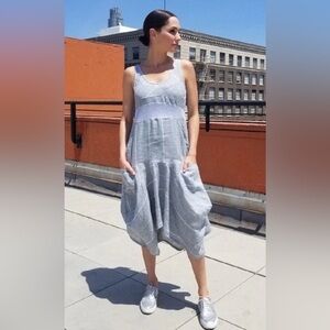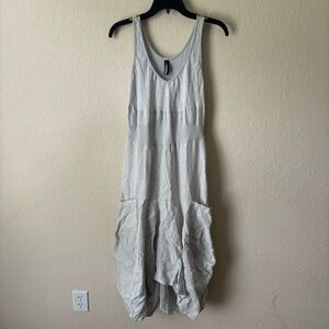 Inizio | Women's Boho Lagenlook Flowy 100% Linen Magic Dress Light Gray Size L