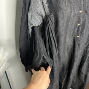 Injiri Dress 42 US XL Black Grey 100% Linen Long Sleeve Maxi India Boho