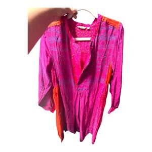 Injiri Shekhawati silk dress women’s medium ombré fuchsia patchwork hand-loomed