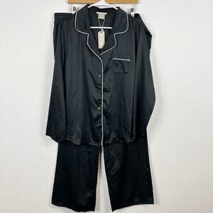 Ink + Ivy Black with White Piping Satiny Pajama Set Black Size XXL