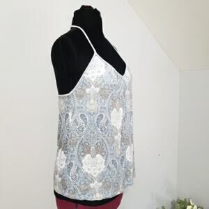 Ink & Ivy Blue Paisley and Floral T Back Plunge V Neckline Tank Top Blouse M