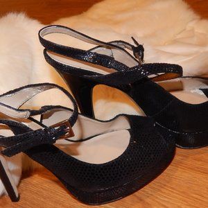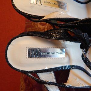 GREAT SHAPE-BLACK SPARKLE PLATFORM EVENING SHOES ( worn once on stage)