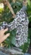 This is a stretchy mesh fabric two front pockets and roll tab sleeves plenty of stretch sheer this is a gray and black and taupe leopard print with some great crystal buttons in excellent condition