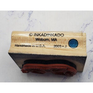 The product is an Inkadinkado Christmas String Lights Wood Mount Rubber Stamp from 2003. This mounted stamp features a background design of string lights, making it perfect for holiday-themed crafting projects. The stamp is made of rubber and was manufactured in the United States, reflecting its quality and durability. Perfect for adding festive touches to cards, gift tags, and other paper crafts, this stamp is a timeless addition to any crafter's collection.
