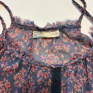Inked & Faded Womens Ditsy Floral Sheer Spaghetti Straps Top Sz Medium Festival