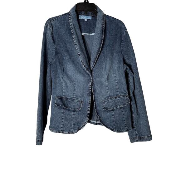 Rock a stylish, edgy look with this Inked and Faded women's jean jacket in size large! This unique piece features a trendy, faded wash and cool inked details that set it apart from the rest.