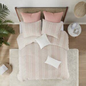The Ink+ivy Kara Cotton Jacquard Comforter Set in King/Cal King size includes a comforter and pillow sham, all made from cozy cotton material with a reversible pink jacquard pattern. This set is perfect for all seasons, providing both luxury and comfort for teens, adults, or kids in their bedroom. The farmhouse style with a hint of family and seasonal theme makes it a cozy addition to any bedroom decor. With features like being hypoallergenic and breathable, this comforter set is a stylish and practical choice for a cozy home.