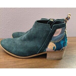 Inkkas Aztec Dk Gray Leather Sz 8 Almond Toe Outside Side Zip Ankle Bootie