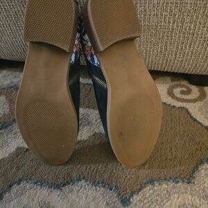 Size 10, lightly worn. Suede blue with frog design on heels