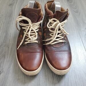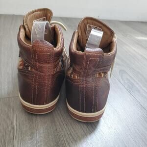 Elegant chukka boots with intricate patterns. Rich brown leather with unique design. Ideal for casual wear.