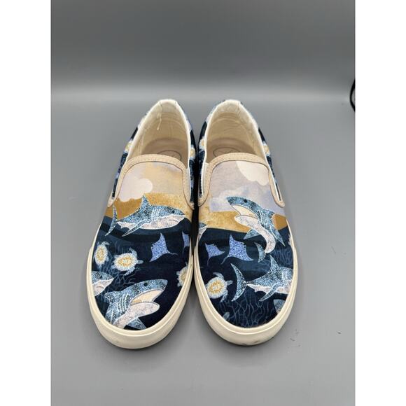 Inkkas Women’s Slip-On Shoes – Size 7.5 – Shark & Ocean Print Canvas