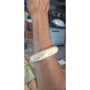 Inlaid Mother Of Pearl mosaic cream color bangle bracelet- mint condition!