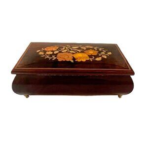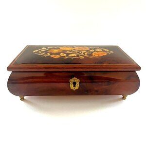 Inlaid Wood Musical Jewelry Box with Lock Floral Hand Made Italy