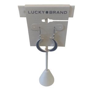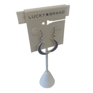 Inlay Crescent Moon Drop Earrings in Blue & Silver Tones.