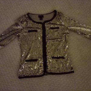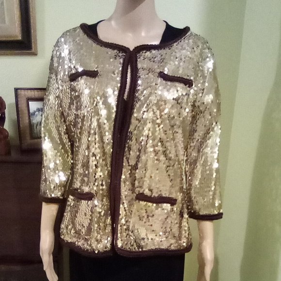 Inman Gold Sequin Brown Trimmed Evening Jacket Petite Medium