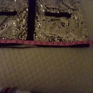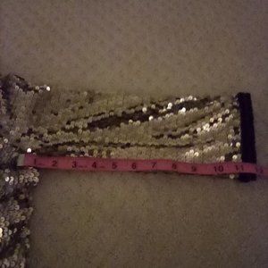 Look stunning at your next great event. Wear this 3/4 sleeve gold sequin brown trimmed evening jacket made of high-quality polyester fabric. Outer shell is sequin. Lining polyester. The hook & eye closure keeps jacket in place.