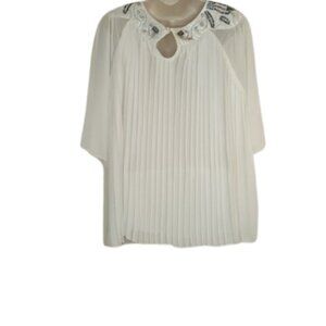 Inman Womens Pleated Beaded Embellished Blouse White Chiffon XL