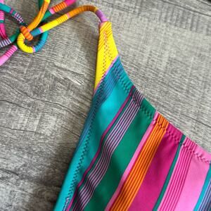 Inmocean Bright Rainbow Striped Bikini Set Juniors L Halter Triangle Top 2 Piece