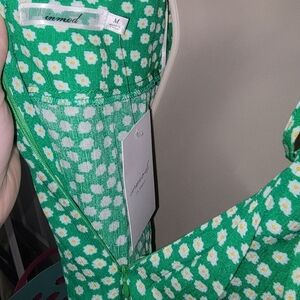 ・❥・Inmod green daisy romper with a beautiful layered ruffle v-neck line. Layered skirt to give a dress appearance. Zipper on back makes it easy to put on. Adjustable criss cross tie in the back. Size Medium NEW WITH TAGS