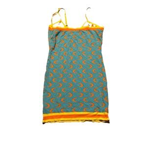 Inmodel Knit Slip Dress Large Y2K Crescent Moon Pattern Blue Orange Yellow