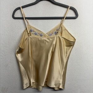 Inner Most Satin Cami Tank Blouse Cream Floral Embroidered Vintage Nighty Slip