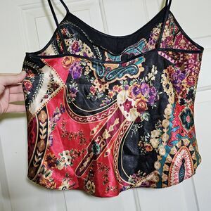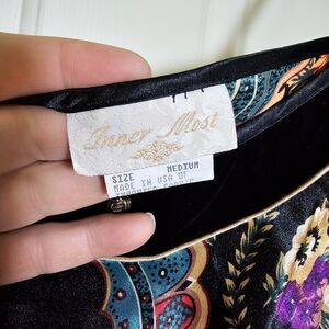 Inner Most Women's Satin Top Colorful Boho Velvet Trim Size Medium