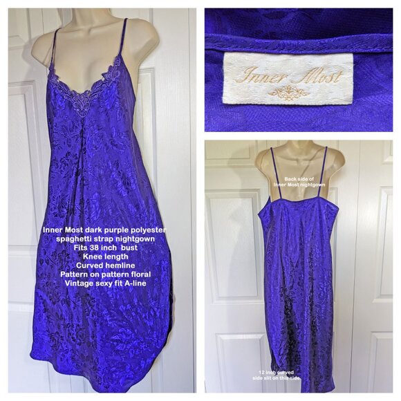 Inner Most dark purple polyester spaghetti strap nightgown, 38" bust, Pretty!
