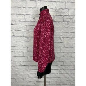 Inner Visions By Ship'n Shore Red Button Up Long Sleeve Turtle Neck Ruffled 70's