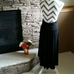 Can be worn as a highlow highwaist, mid waist or rolled down low rise skirt. Can be great for strapless dress or coverup. Worn but in great shape! Completely elastic and flowy.
