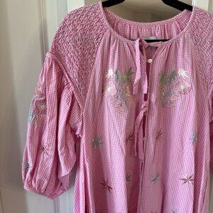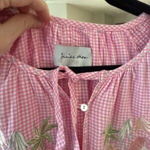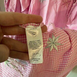 Innika Choo Gingham Print Embroidered Dress One Size Color Pink White