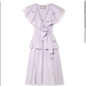 Innika Choo Lavender Pi Furlunche Wrap Ruffled Embroidered Linen Dress
