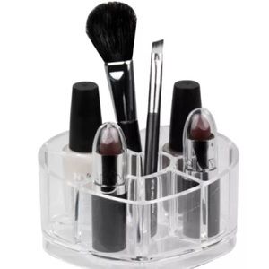 We women have enough makeup to last us forever. That probably explains why we leave it all over our homes--cabinets drawers pouches our closets--and more. It would be much easier if we kept it neat and organized that way we could find everything in one spot. That's where this Innovative Living Clear Cosmetic Organizer comes in. It has multiple slots for your brushes blush bronzer foundation mascara and more!