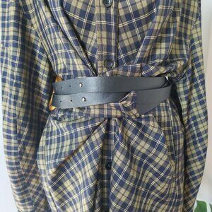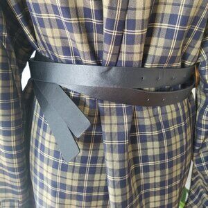 Belt with gold loop can be worn hanging in front, wrapped around to the back, or hanging from side.
