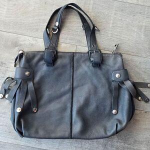 Innue Graphite Gray Italian Distressed Leather Hobo Bag Handbag Grunge Rock