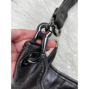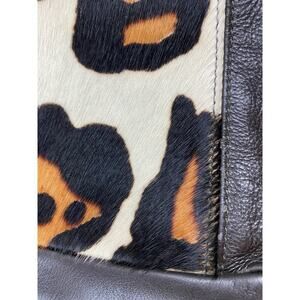 Innue Women's Black Pebbled Leather Animal Print Hobo Shoulder Bag Made in Italy. Strap can be detached on one side and tucked into purse. There are a few small flaws in the leather on the back side of the purse. Pre-owned in good condition. Measures 13.5"W X 9.5"H X 3.5"D with a 10" strap drop.