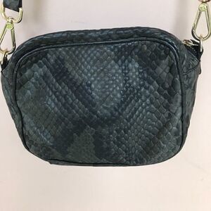 This leather bag has a print and embossed to look like snakeskin, is in very good condition outside inside the seam has come undone but is an easy fix