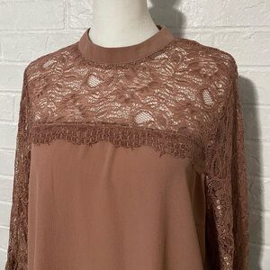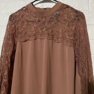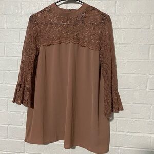 Inny Mauve Lace Detail Bell Sleeves Tunic Top
