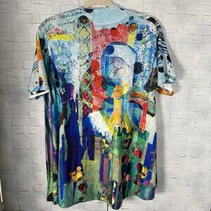 Inoah women’s V-neck lightweight sweater blouse modern art to wear made in USA
