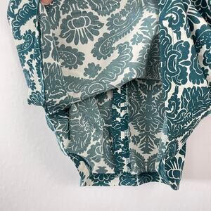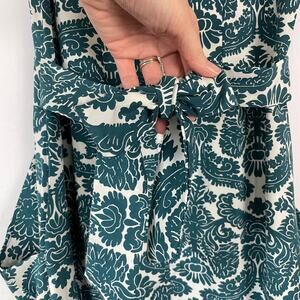 Inomi | Teal & White Damask Floral Pattern Pleated Pocket Tie Back Dress
