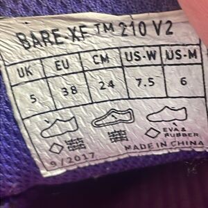 Inov-8 Bare-XF 210 v2 Women’s Sz 7.5 Black Purple Barefoot Minimalist Off Road Trail Running Sneakers in very good condition. Stylish athletic shoes by Inov-8. Features a sleek black and purple design. Perfect for cross training, trail and off road running. Get these today, ladies.