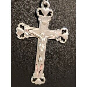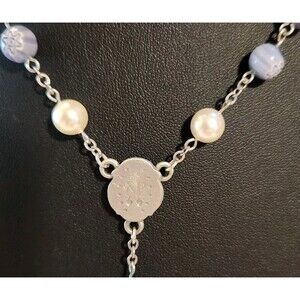 Inri Rosary Cross Crusifix Necklace Jesus Faux Pear Purple Beads 19"