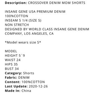 New with Tags Insane Gene Hi-Rise Crossover Short Distressed Mom Jeans Shorts in Black Denim Size M