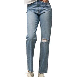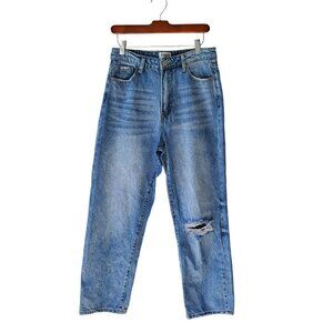 Insane Gene Ripped Straight Jeans 100% Cotton Hi Rise Light Wash 9/28