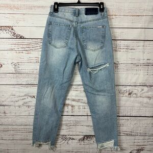 Insane Gene high waisted light wash raw hem ripped size 1 baggy jeans