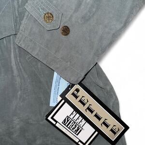 Insane new with tags vintage sage green faux suede trench coat with beautiful gold buttons and unique stitch detailing.