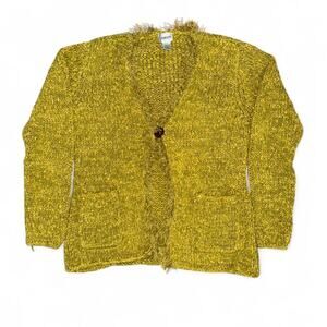 Insane Chico's light green cardigan with single button closure and fringe trim. Tagged 2 but fits like a US S-M.