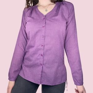 Insect Repellent Purple Long Sleeve Slit Button Down