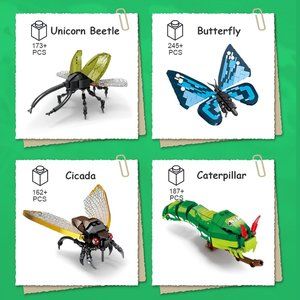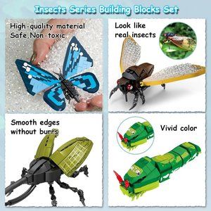Selling a fun and engaging 767+ piece building block kit perfect for kids 6 years and older. This set includes four large insect figures – a butterfly, unicorn beetle, cicada, and caterpillar – designed with realistic details to mimic real insects. It's not just a toy; it's a STEM educational tool that enhances color recognition, hand-eye coordination, fine motor skills, imagination, and creativity. Made from high-quality, non-toxic materials with smooth edges for safety. Simple step-by-step instructions make assembly a breeze. Once playtime is over, these insect models make great room decorations. This kit is an excellent gift idea that encourages important skills such as communication, problem-solving, and teamwork. Perfect for birthdays, holidays, or as a party favor.