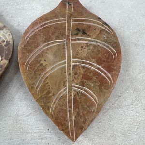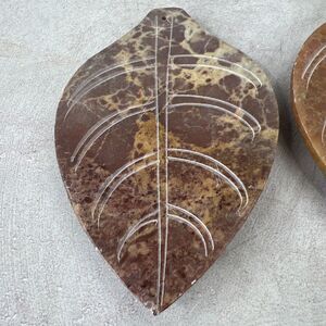 Made with high-quality stone, this incense holder set is durable and long-lasting. The rich brown color of the stone complements the intricate leaf pattern, making it a perfect addition to any room. Whether you want to create a relaxing atmosphere or simply want to add a touch of sophistication to your home, these soapstone trinkets are an excellent choice. Get your set today and take your home decor to the next level.