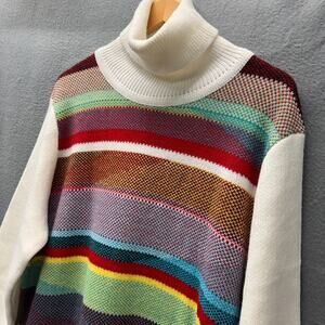 Inserch Turtleneck Sweater Mens Large Colorful Stripe Coastal Grandpacore Knit